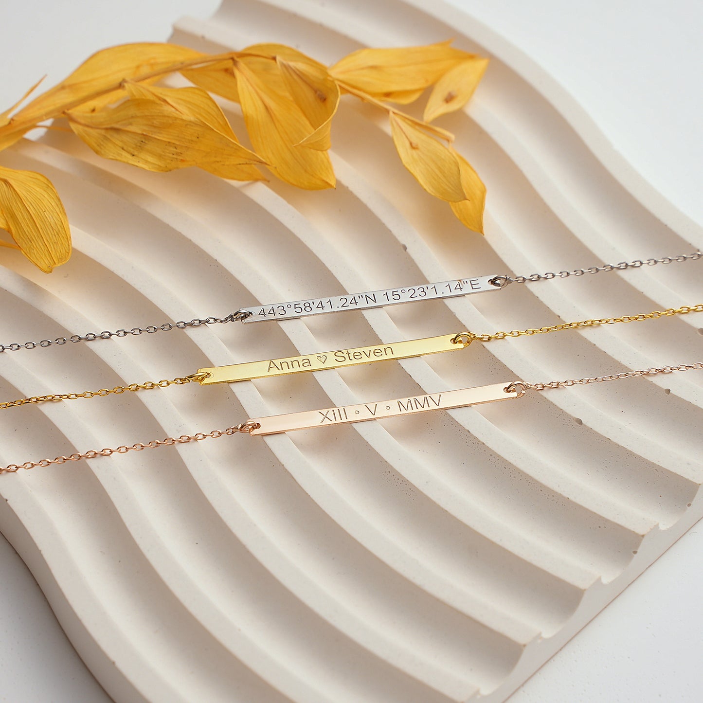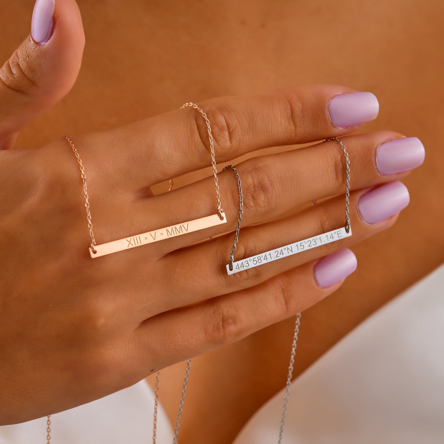 "I designed matching bar necklaces for my bridesmaids with the coordinates of where we met. There wasn't a dry eye in the room."